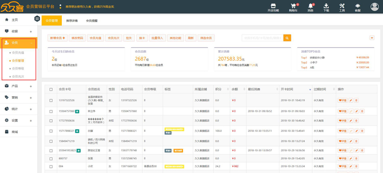 8、短信平臺、來電彈屏 、會員生日、消費通知