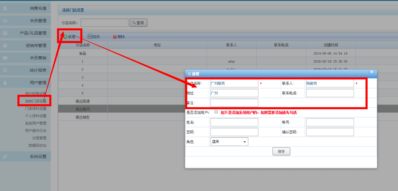 三.增加完分店之后,一后添加分店的員工