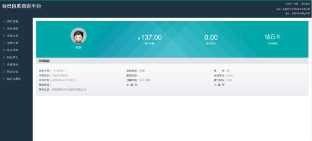 1、電腦端會員自助查詢平臺,會員用自己卡號和密碼就可以直接登錄進行查看