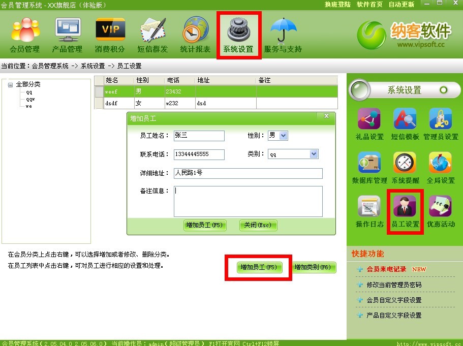 然后在系統(tǒng)設(shè)置-員工設(shè)置-增加員工中添加一個新員工