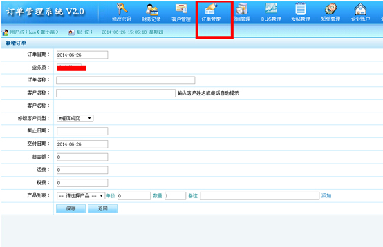 客戶成交之后,可以新增訂單把客戶的訂單添加進去。