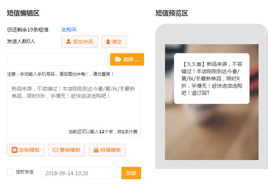 短信的發(fā)布時(shí)間十分靈活,既可以即時(shí)發(fā)送,也可以定時(shí)發(fā)送,具有很強(qiáng)的散播性。針對特定人群的營銷,則可以通過會員等、積分?jǐn)?shù)量、消費(fèi)金額或者標(biāo)簽等條件進(jìn)行查詢。