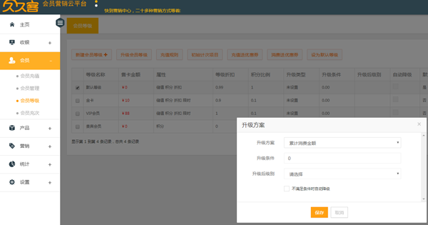 商家對會員進(jìn)行分級制度管理,設(shè)置不同的會員等級,每個等級享受的會員折扣和消費獲得的積分比例都不一樣。且建立會員等級的升級制度,會員消費金額達(dá)到一定金額可以升級為高級會員,這樣能更好地為高端客戶服務(wù),留住客源,穩(wěn)定營業(yè)額。