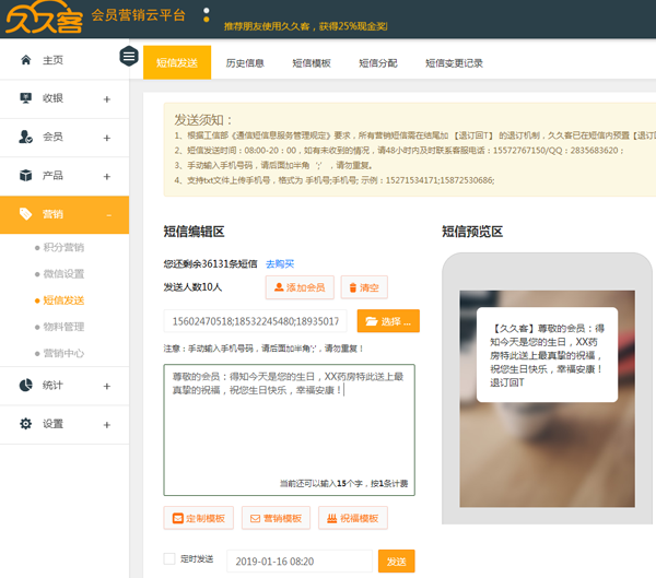 比如及時以短信的方式發(fā)送會員消費明細(xì)、會員生日發(fā)送祝福短信、節(jié)假日發(fā)送商家福利、積分兌換禮品等。商家可以借助會員管理系統(tǒng)的統(tǒng)計報表功能,來統(tǒng)計分析消費傾向、消費頻率,從而更加有針對性的來進(jìn)行營銷管理。