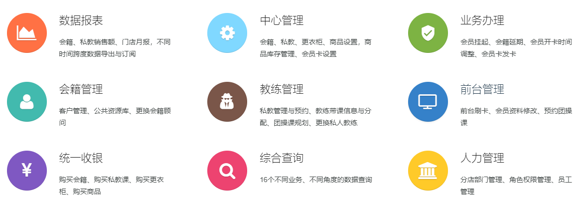 健身房會(huì)員管理系統(tǒng)是一款專業(yè)的健身俱樂(lè)部管理軟件可以滿足健身會(huì)所經(jīng)營(yíng)過(guò)程的會(huì)員管理,收費(fèi)管理,健身教練管理,門禁管理的多種管理要求??梢詫?huì)籍、私教、采購(gòu)、財(cái)務(wù)等部門業(yè)務(wù)集合在同一個(gè)平臺(tái)上開(kāi)展工作。