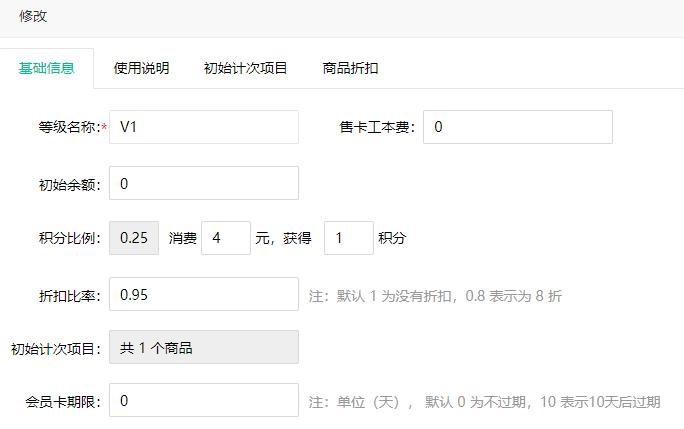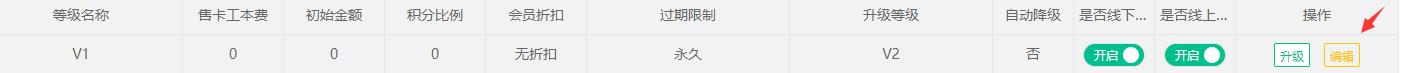 3,如下圖所示填寫(xiě)V1等級(jí)的積分比例和折扣比率