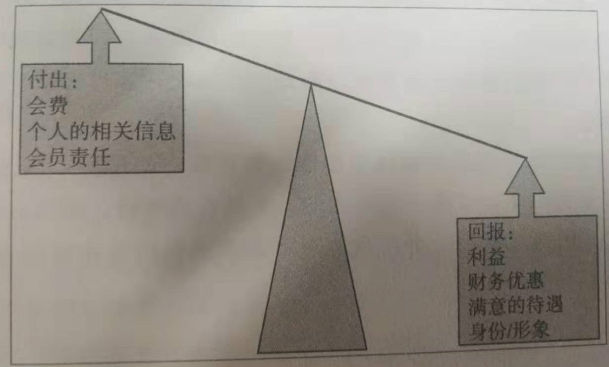 很顯然,當(dāng)客戶(hù)在考慮是否加入一個(gè)忠誠(chéng)計(jì)劃時(shí),他會(huì)詳細(xì)衡量付出(會(huì)費(fèi)、個(gè)人的相關(guān)信息、會(huì)員責(zé)任)與回報(bào)(利益、財(cái)務(wù)優(yōu)惠、滿(mǎn)意的待遇、身份/形象),當(dāng)后者大于前者時(shí),客戶(hù)會(huì)感到有價(jià)值,才會(huì)決定加入。