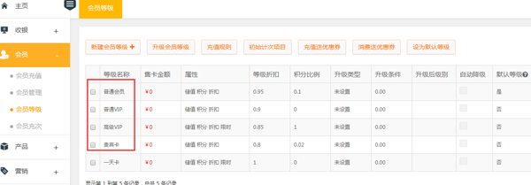 3、納客會員管理系統(tǒng)可設(shè)置不同的會員等級,不同的會員等級可享受不同的會員折扣,會員消費后還可以領(lǐng)取不同的積分,比如普通會員持卡可打9.5折,消費1000得1積分;VIP會員持卡可打9折,消費500元得1積分。