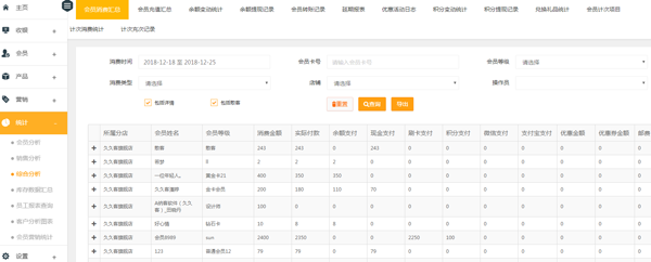 6、納客會員管理系統(tǒng)可統(tǒng)計會員消費情況、會員充值情況、余額變動情況、積分變動情況等,還可以生成各種數(shù)據(jù)統(tǒng)計報表,幫助商家進(jìn)行有效分析,從而制定出更加精準(zhǔn)的營銷方案。