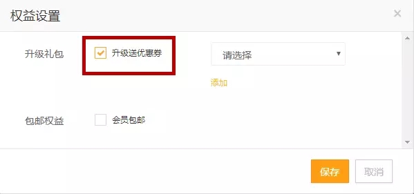 在【營銷】→【營銷中心】→【活動營銷】→【會員權(quán)益】界面中,商可以選擇會員達(dá)到哪個(gè)等的時(shí)候獲得優(yōu)惠券。