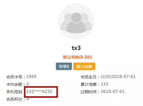 在【收銀】→【快速消費(fèi)】界面,和其他消費(fèi)、充值、充次的會員信息中,電話號碼將隱藏中間四位數(shù),很好的保護(hù)了會員隱私。