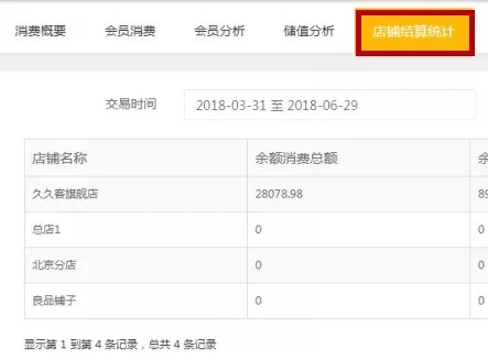 在【統(tǒng)計(jì)】→【會員分析】界面中,新增店鋪結(jié)算統(tǒng)計(jì)報(bào)表,方便客戶對總店和分店的消費(fèi)、充次、充值、結(jié)算金額進(jìn)行統(tǒng)一結(jié)算。