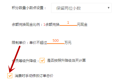 三、消費(fèi)時能修改訂單總價,相關(guān)的操作方式要在PC端【系統(tǒng)設(shè)置】→【系統(tǒng)參數(shù)】→【消費(fèi)設(shè)置】中,勾選【消費(fèi)時手動修改訂單總價】。