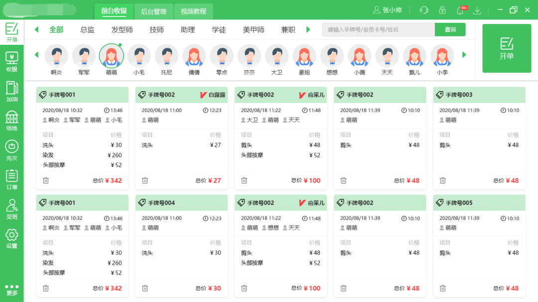 針對(duì)美業(yè)版,v8新增開單功能,下面就主要功能亮點(diǎn)做一個(gè)簡(jiǎn)單介紹。
