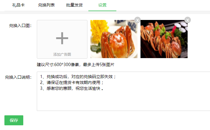 二、禮品卡新增兌換界面輪播圖和兌換入口說明相關(guān)設(shè)置