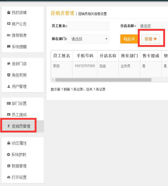 在主菜單【系統(tǒng)】--- 【系統(tǒng)設(shè)置】,點擊打開【促銷員設(shè)置】,可以點擊新增,如圖:
