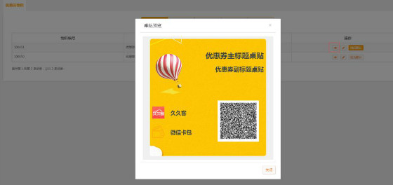 步驟二:預(yù)覽優(yōu)惠券物料樣式(營(yíng)銷(xiāo)=》物料管理=》優(yōu)惠券物料=》預(yù)覽)